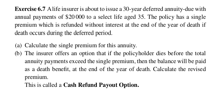 Exercise 6 7 Alife Insurer Is About To Issue A Chegg Com